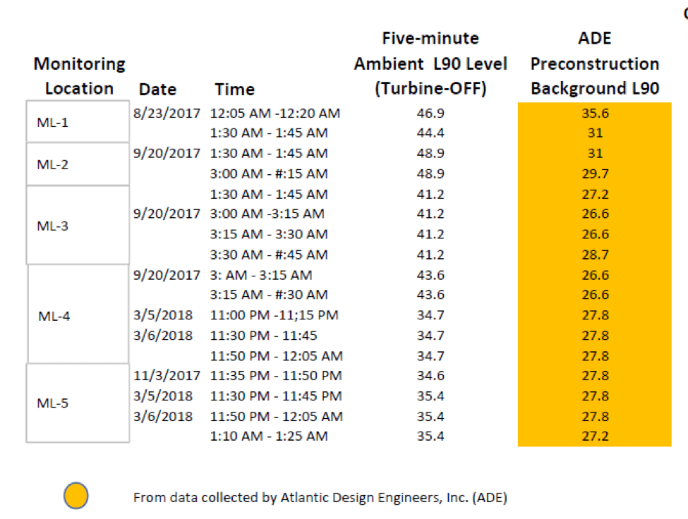 Now, according to Tech Environmental noise testing, background noise is 7 to 18 dBA higher in the same locales. What could explain this? Consider the one new element in the cranberry bogs. There are now 4 wind energy plants, with nacelles alone that weigh 26 tons, suspended on 500 foot towers.
